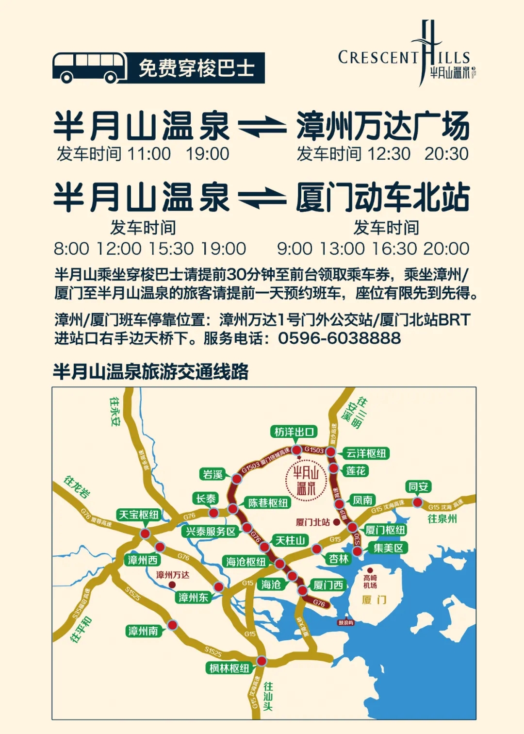 免费定时定点穿梭巴士平日、周末通用