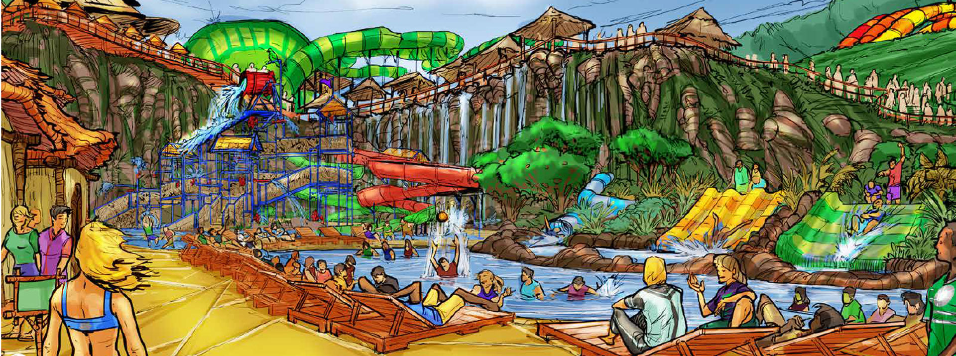 二期酒店将新增占地200亩半月山水上乐园,大喇叭、超长滑道、大滑板、儿童水寨、海啸造浪池........让您嗨翻整个夏季。