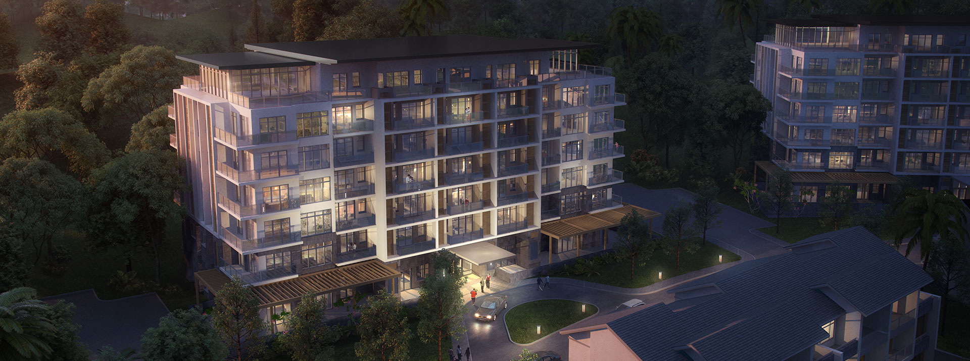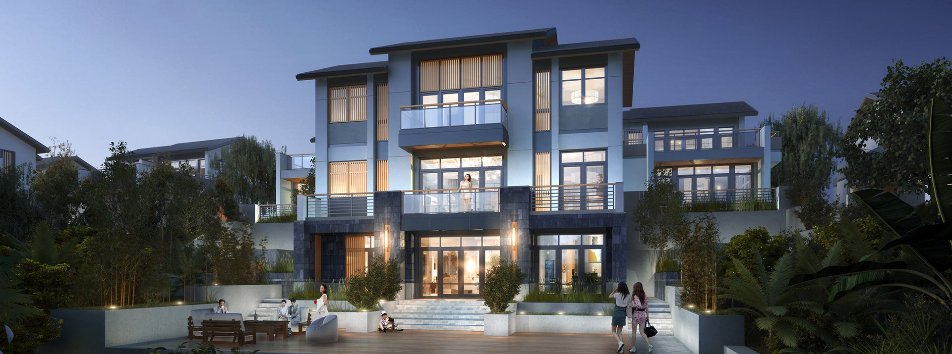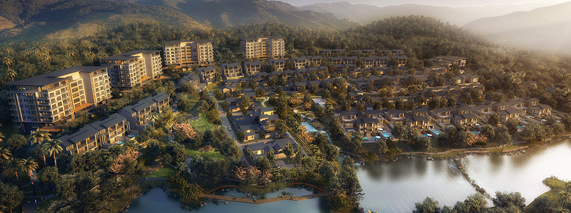 二期设计度假公寓、联排别墅、合院别墅及新中式院落别墅,配备全日餐厅、KTV娱乐,设计配套一千多平无柱可变空间多功能厅。